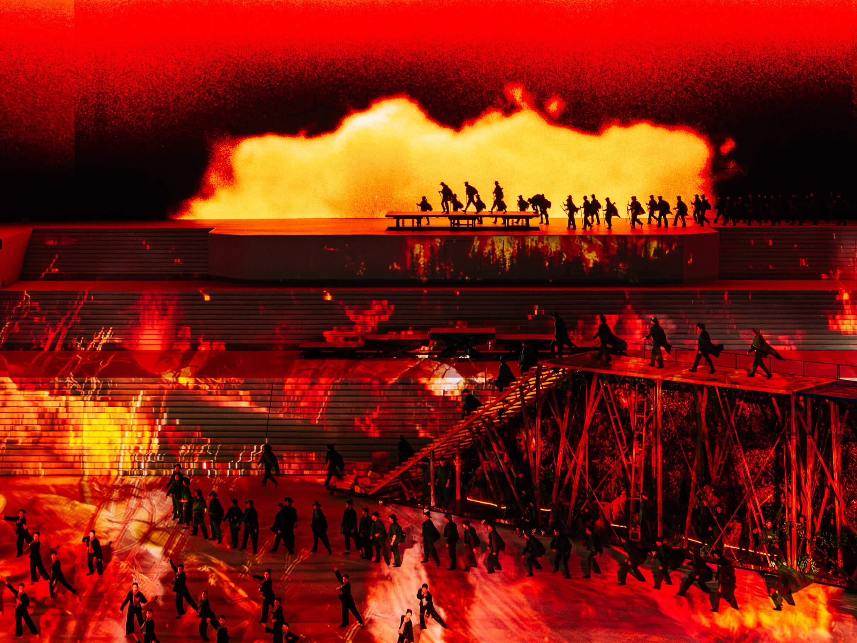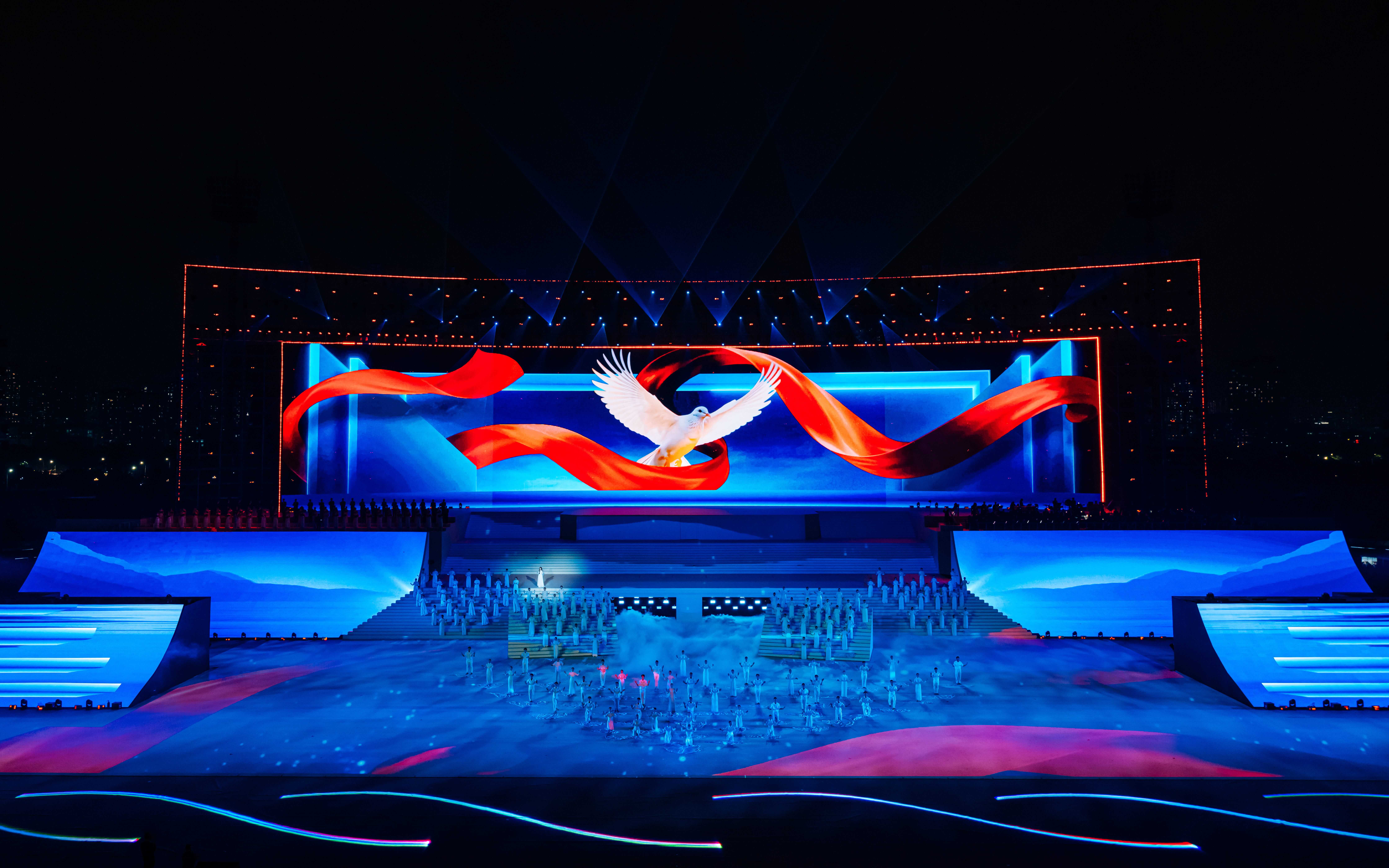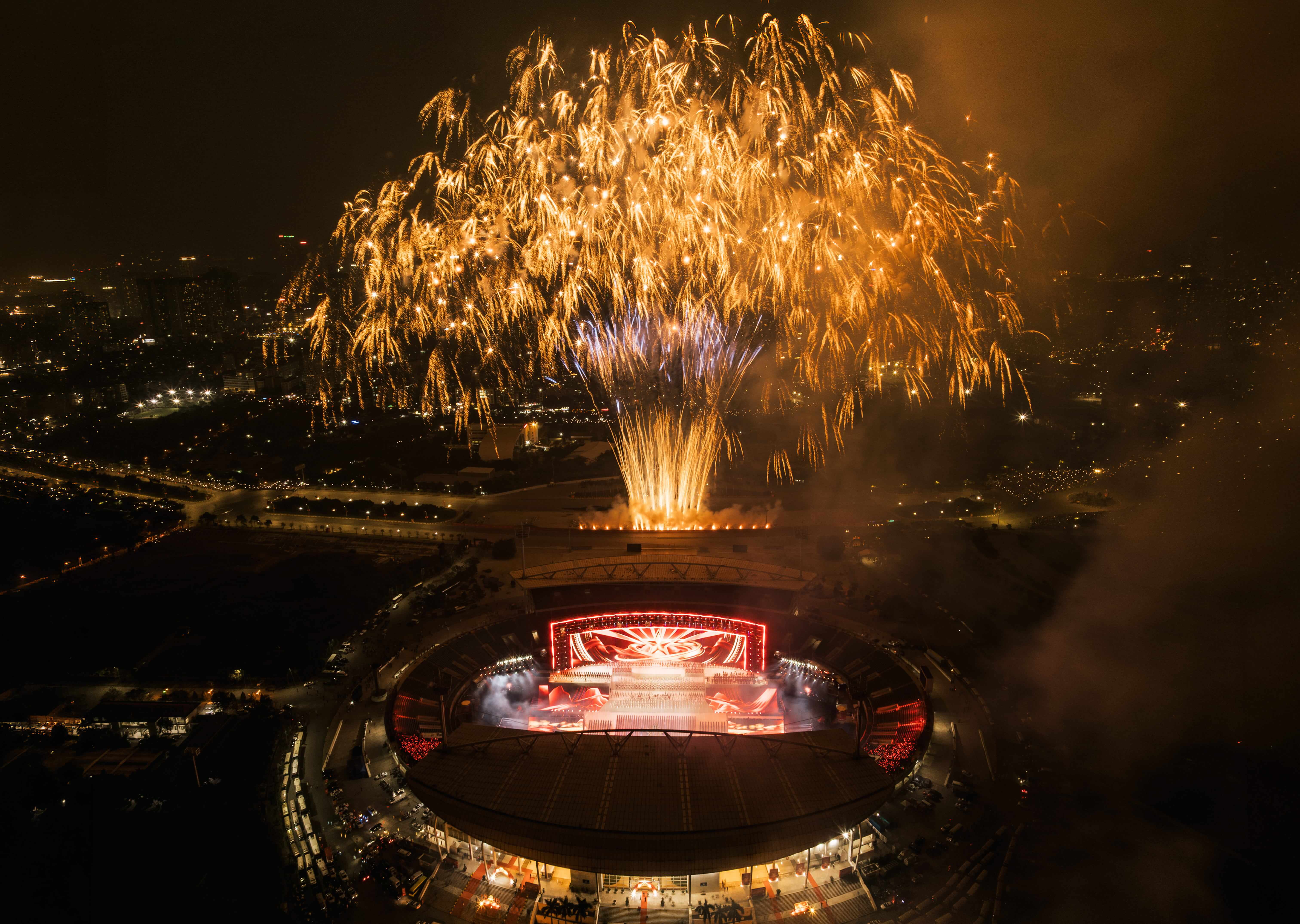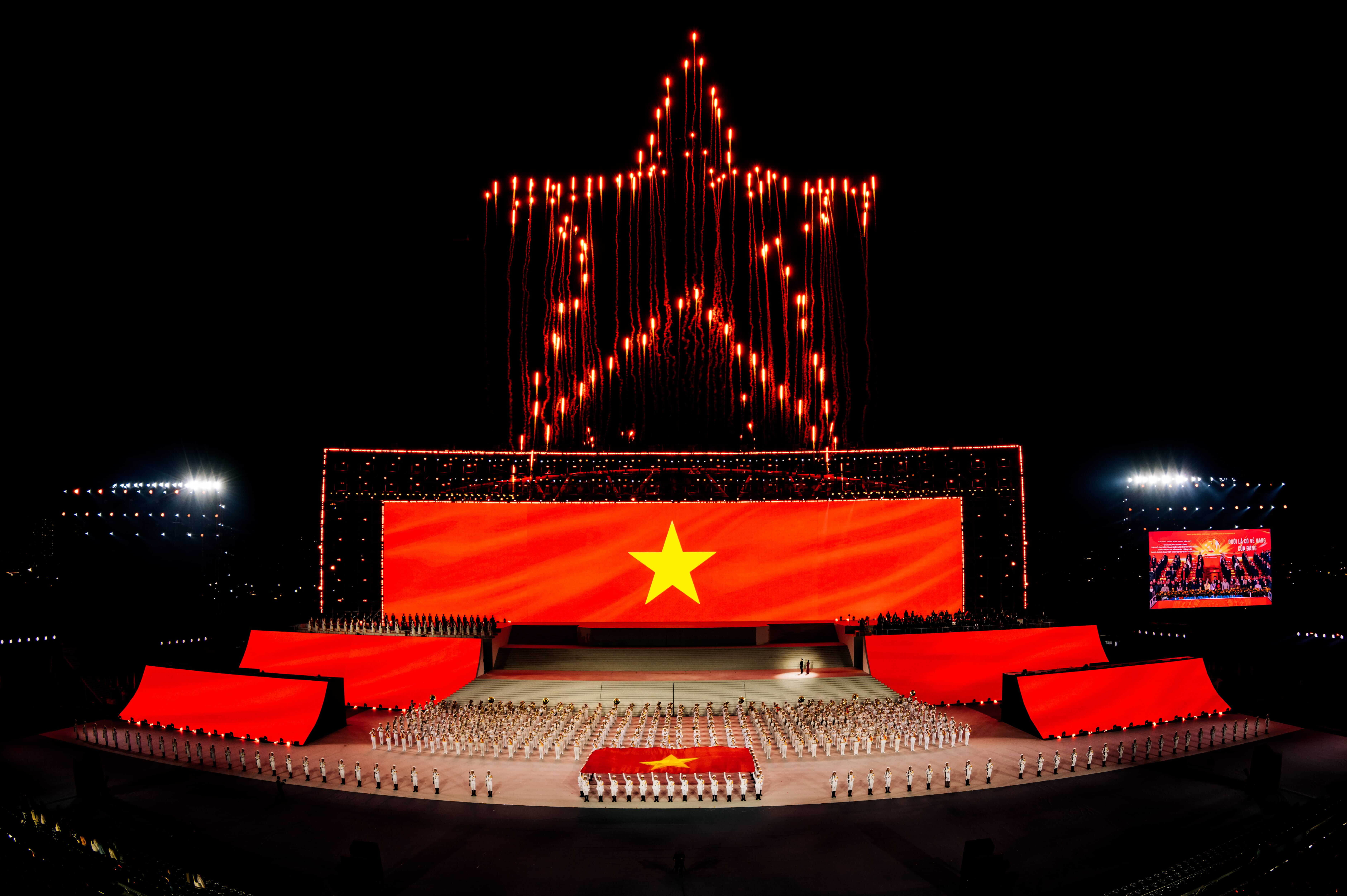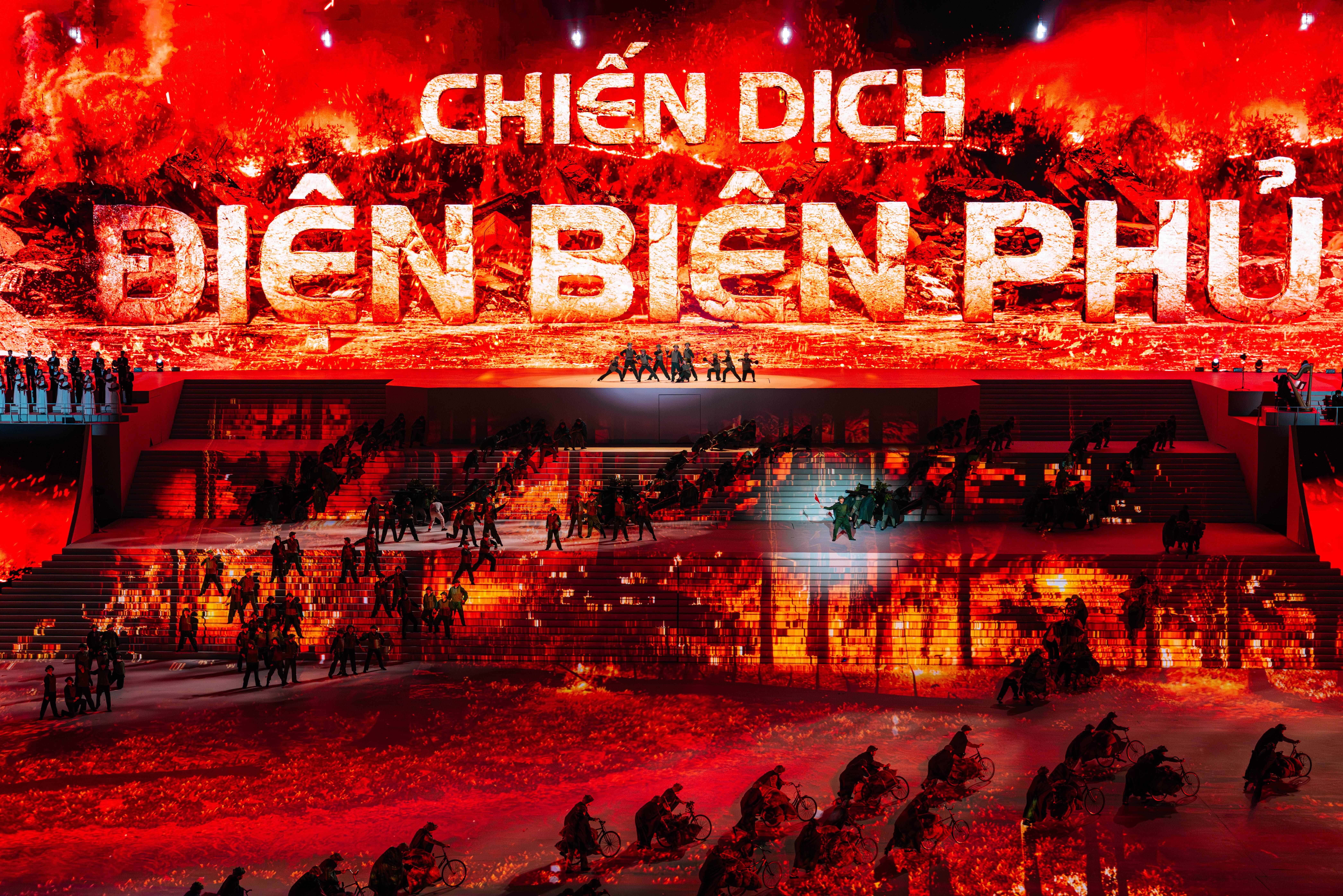 Sự kiện được thực hiện trên hạ tầng sân khấu hơn 10.000m², 3.190m² màn hình LED, gần 6TB dữ liệu visual 3D, vận hành đồng bộ 3.000+ thiết bị âm thanh – ánh sáng – mapping laser, cùng 7.000 diễn viên và 1.000 nhân sự kỹ thuật. Hệ thống 3D mapping, timecode tự động và máy chủ hiệu năng cao bảo đảm toàn bộ hình ảnh, âm thanh và hiệu ứng được đồng bộ chính xác, đáp ứng yêu cầu vận hành ở quy mô hàng chục nghìn khán giả.