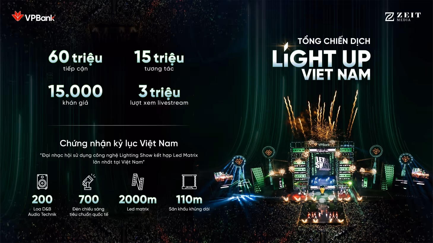 Light Up Vietnam is a large-scale campaign marking VPBank’s rebranding and announcing its new mission, “Vì một Việt Nam thịnh vượng.” To celebrate the spirit of resilience, Zeit crafted the message “Light Up Vietnam,” aiming to inspire and ignite ambition in every individual, aligning with VPBank’s journey toward building a prosperous Vietnam. The campaign achieved resounding success, leaving a strong impression on the public nationwide and reaching remarkable milestones.