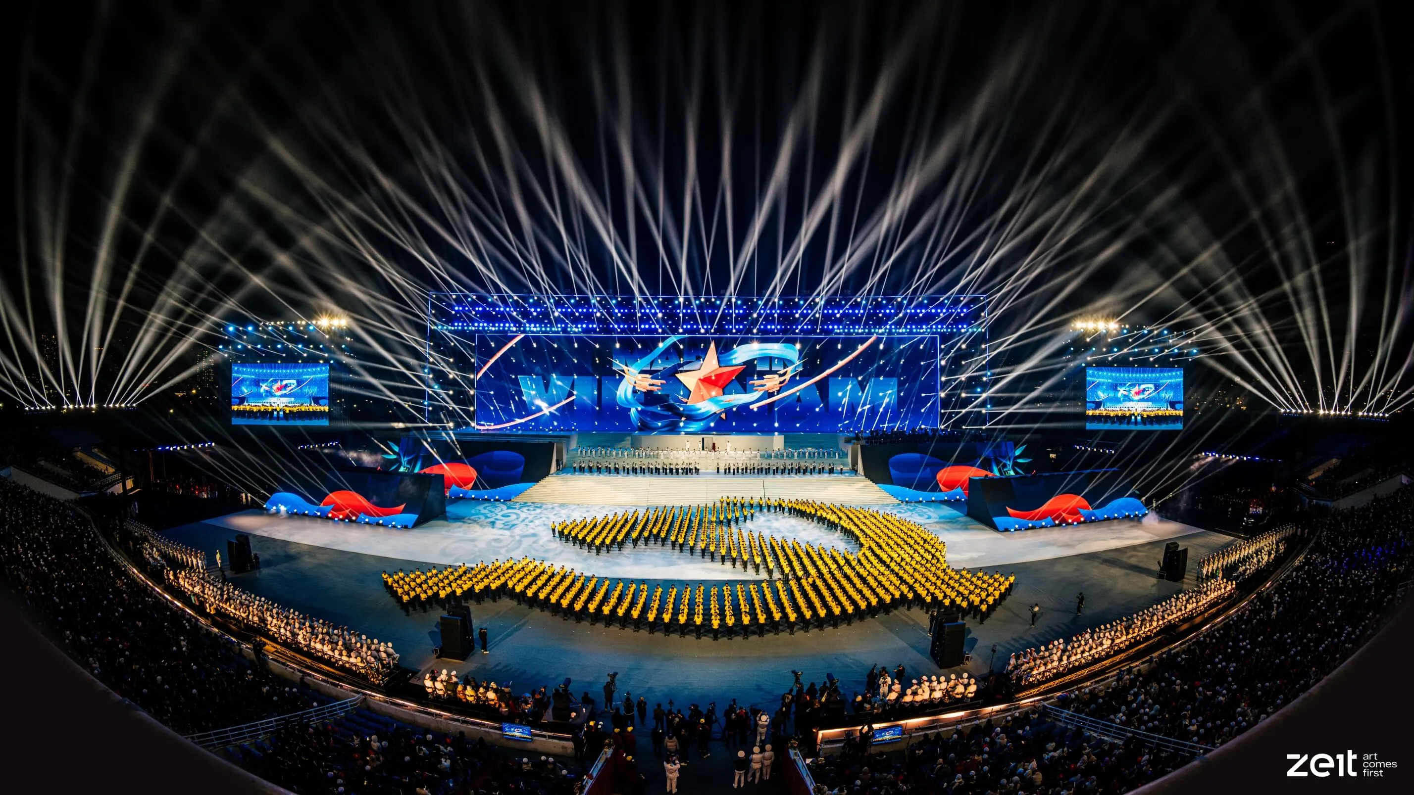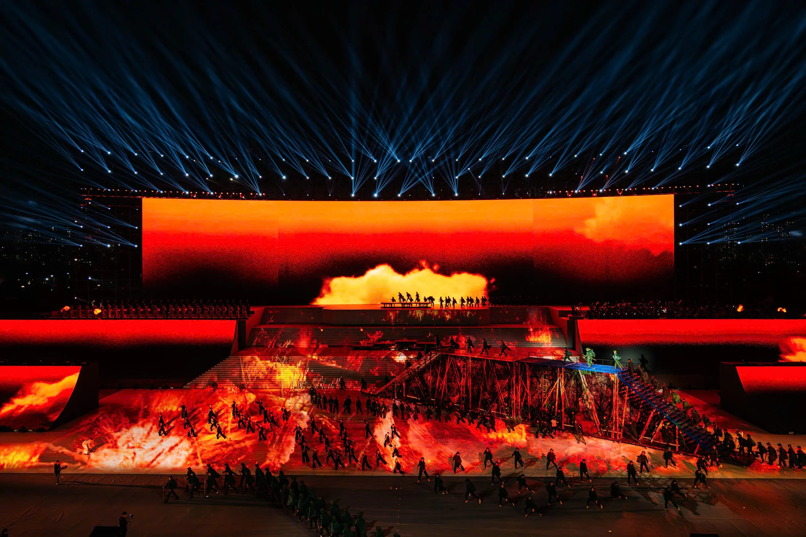The event was delivered on an unprecedented production scale, featuring a stage spanning over 10,000 square meters, 3,190 square meters of LED screens, nearly 6TB of 3D visual content, and the synchronized operation of more than 3,000 audio, lighting, and laser mapping devices, supported by 7,000 performers and 1,000 technical personnel. A fully integrated system of 3D projection mapping, automated timecode programming, and high-performance servers ensured precise synchronization of visuals, sound, and effects, meeting the operational demands of a live audience of tens of thousands.